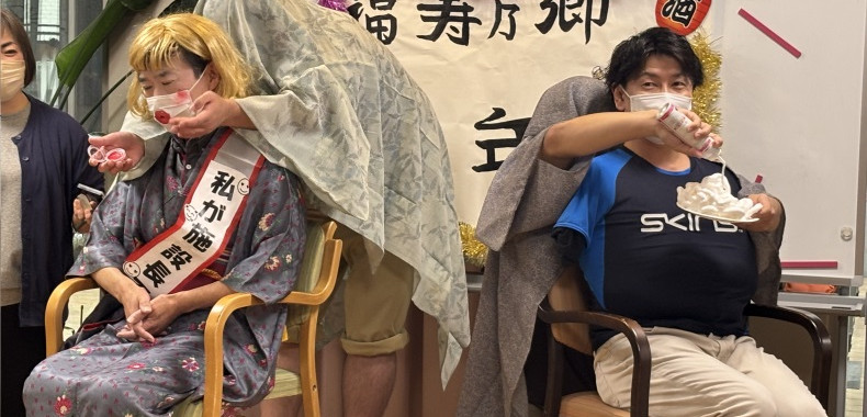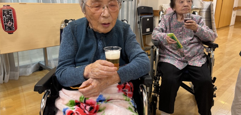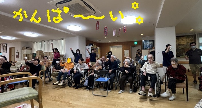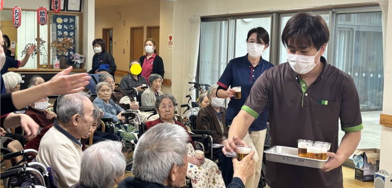 ちょっとしたおつまみを食べたり、ノンアルコール飲料🍻や甘酒、ジュース🍹などを飲んだりしながら、職員による出し物を見て過ごして頂きました😊✨
